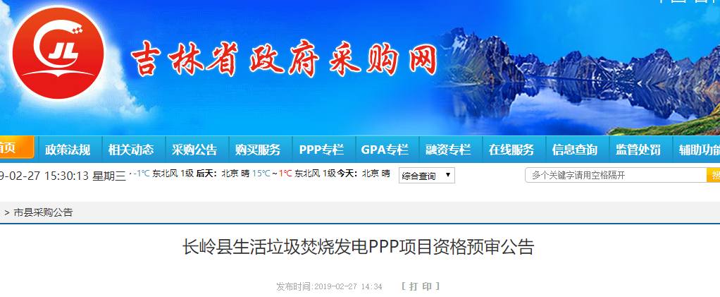 中國環(huán)聯(lián)網(wǎng)獲悉,2月27日,吉林省長嶺縣生活垃圾焚燒發(fā)電PPP項(xiàng)目發(fā)布資格預(yù)審公告。據(jù)悉,項(xiàng)目概況如下:(一)項(xiàng)目建設(shè)內(nèi)容長嶺縣生活垃圾焚燒發(fā)電項(xiàng)目該項(xiàng)目由長嶺縣城市開發(fā)辦公室發(fā)起,總建設(shè)規(guī)模為日處理生活垃圾500噸/日,配一臺7.5MW純凝汽式汽輪發(fā)電機(jī),項(xiàng)目年處理生活垃圾18.25萬噸。項(xiàng)目采用...