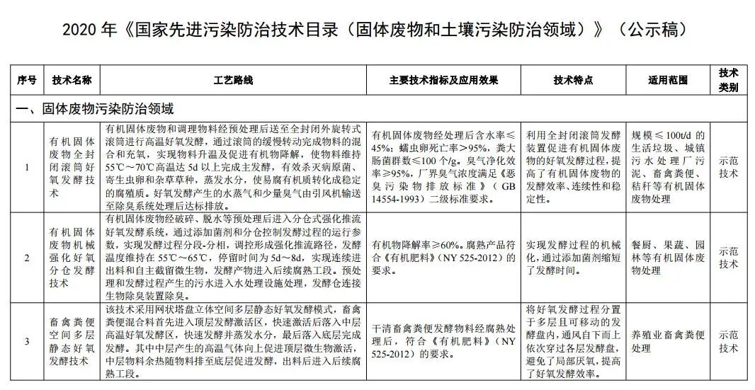 生態(tài)環(huán)境部:固廢領(lǐng)域2020年國(guó)家先進(jìn)污染防治技術(shù)目錄公示!