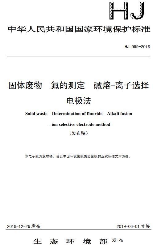 生態(tài)環(huán)境部發(fā)布《固體廢物 氟的測定 堿熔-離子選擇電極法》(發(fā)布稿)