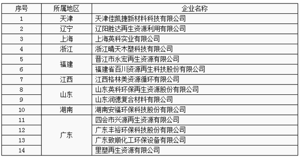 符合廢塑料、廢礦物油、建筑垃圾、廢舊輪胎綜合利用行業(yè)規(guī)范條件企業(yè)名單公示