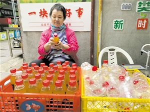 周茹府將環(huán)保酵素整理打包,準(zhǔn)備免費(fèi)發(fā)放給市民。用廢舊塑料瓶裝滿環(huán)保酵素,再將環(huán)保酵素知識貼粘至瓶身……經(jīng)過精心制作,環(huán)保酵素裝箱就可免費(fèi)發(fā)放給市民及游客。來自新疆的61歲“候鳥”老人周茹府是??谑忻捞m區(qū)白沙門環(huán)保教育站的一名垃圾分類志愿者,這些環(huán)保酵素就是通過她裝瓶打包而成。在她眼里,做這些微不足道...