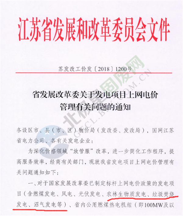 近日江蘇省發(fā)改委公開發(fā)布了《關(guān)于發(fā)電項目上網(wǎng)電價管理有關(guān)問題的通知》,對于國家發(fā)展改革委已制定標(biāo)桿上網(wǎng)電價政策的發(fā)電項目(含燃煤發(fā)電、風(fēng)電、光伏發(fā)電、農(nóng)林生物質(zhì)發(fā)電、垃圾焚燒發(fā)電、沼氣發(fā)電)、省內(nèi)公用燃煤熱電機(jī)組,不再發(fā)文明確具體項目的上網(wǎng)電價。具體內(nèi)容如下: