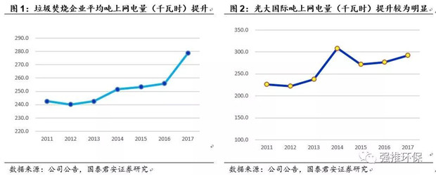 摘要:我們整理數(shù)據(jù)發(fā)現(xiàn),近年來垃圾焚燒企業(yè)噸垃圾上網(wǎng)電量出現(xiàn)較明顯的提升。1)垃圾焚燒龍頭公司的噸垃圾上網(wǎng)電量均值在2011-2017七年間提升36千瓦時。按照全年上網(wǎng)電量/年入廠垃圾量作為計算指標,2017年龍頭公司平均噸上網(wǎng)電量均值為279千瓦時,較2011年時提升了15%,增加了36千瓦時。2...