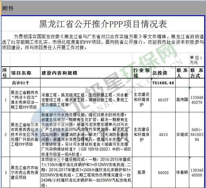 日前,黑龍江省政府遴選了51宗前期工作扎實、市場化程度高的PPP項目,面向廣東省公開推介。其中涉及環(huán)保項目23個。詳情如下:黑龍江省公開推介PPP項目情況表為貫徹落實國家發(fā)改委《黑龍江省與廣東省對口合作實施方案》等文件精神,黑龍江省政府遴選了51宗前期工作扎實、市場化程度高的PPP項目,面向我省公開...