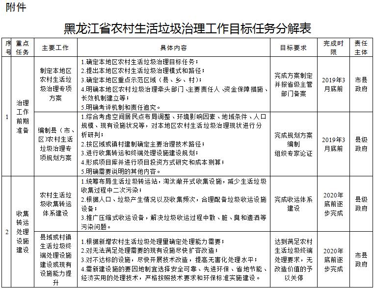 日前,黑龍江省發(fā)布了《黑龍江省農(nóng)村生活垃圾治理專項實施方案(2018—2020年)》《黑龍江省農(nóng)村室內(nèi)戶廁改造及室外公共廁所建設專項實施方案(2018—2020年))》和《黑龍江省農(nóng)村室外衛(wèi)生戶廁改造三年行動專項實施方案(2018—2020年)》,詳情如下:黑龍江省人民政府辦公廳關于印發(fā)黑龍江省農(nóng)村...
