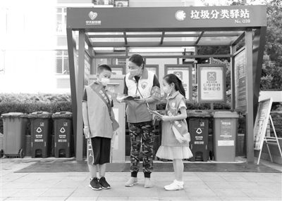 在北京市海淀區(qū)新科祥園社區(qū),社區(qū)工作人員(中)為“綠色明天”環(huán)保志愿小隊(duì)隊(duì)員李夢鴻一(右)、施柏涵介紹垃圾分類知識(shí)。新華社記者 任超攝住建部、生態(tài)環(huán)境部等6部委近日聯(lián)合印發(fā)《綠色社區(qū)創(chuàng)建行動(dòng)方案》(以下簡稱《方案》),要求綠色社區(qū)創(chuàng)建要與居民自治機(jī)制建設(shè)、社區(qū)服務(wù)體系建設(shè)有機(jī)結(jié)合起來,營造社區(qū)宜居環(huán)...