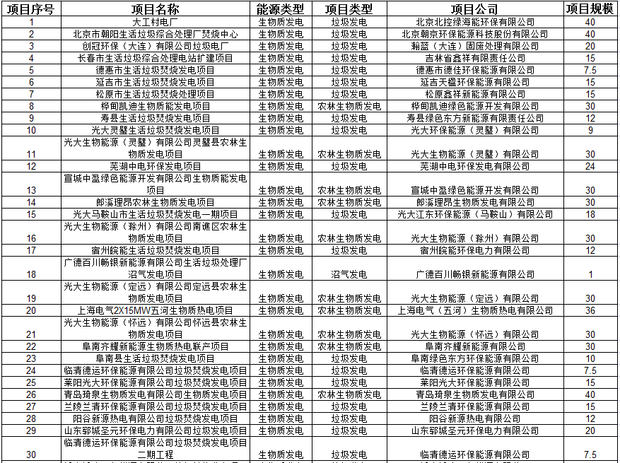 文章導(dǎo)讀10月30日,國家電網(wǎng)有限公司已將完成公示的第六批次可再生能源發(fā)電項目補貼項目清單上報國家主管部門,本次公布的2020年第六批可再生能源發(fā)電補貼項目清單中,生物質(zhì)發(fā)電項目總計85個,其中垃圾焚燒發(fā)電項目52個,沼氣發(fā)電項目8個,農(nóng)林生物質(zhì)發(fā)電項目25個,清單如下。(點擊圖片可放大查看)公告全...