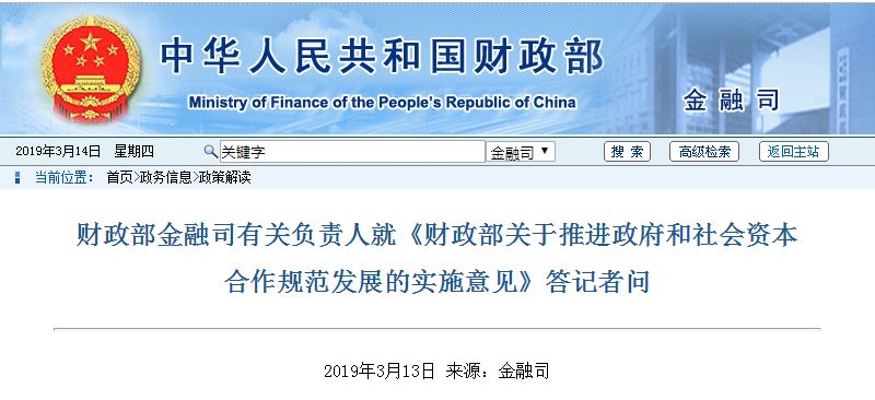 文章導讀近日,財政部印發(fā)《關于推進政府和社會資本合作規(guī)范發(fā)展的實施意見》(以下簡稱《實施意見》)。財政部金融司有關負責人就《實施意見》有關情況回答了記者的提問。來源:財政部問:請介紹一下出臺《實施意見》的背景和主要目的?答:推廣政府和社會資本合作(PPP)模式,引導社會資本參與公共服務供給,是黨中央...