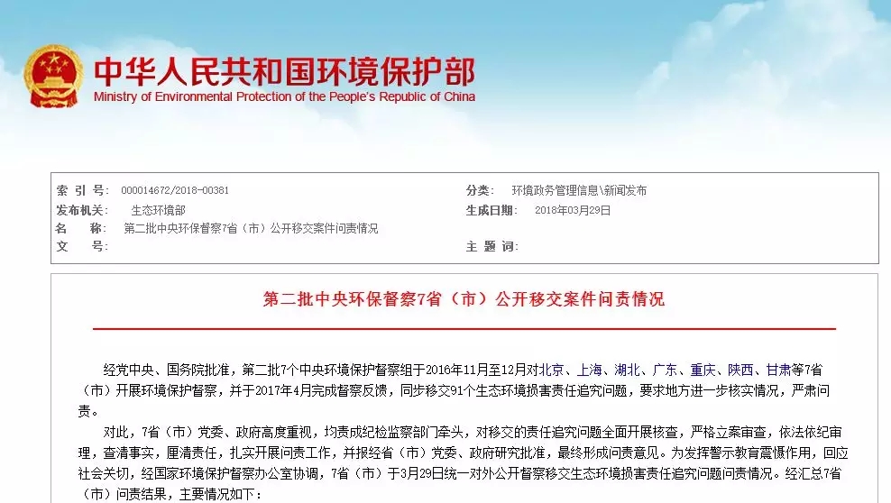 3月29日,生態(tài)環(huán)境部舉行了成立后的首場例行新聞發(fā)布會。新聞發(fā)言人劉友賓表示,中央環(huán)保督查工作將繼續(xù)推進深化,再用三年左右時間完成第二輪中央環(huán)保督查全覆蓋。全面啟動七大專項行動,作為打好“污染防治攻堅戰(zhàn)”的標志性工程。來源:新華網(wǎng)、央廣網(wǎng)在當天舉行的新聞發(fā)布會上,他介紹這七項專項行動是:這七大專項行...