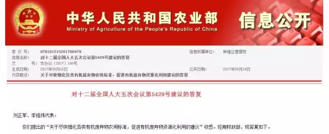 8月16日,農(nóng)業(yè)部公開了對(duì)十二屆全國(guó)人大五次會(huì)議第5429號(hào)建議的答復(fù),對(duì)劉正軍、李祖?zhèn)ゴ硖岢龅摹瓣P(guān)于盡快細(xì)化各類有機(jī)廢棄物農(nóng)用標(biāo)準(zhǔn),促進(jìn)有機(jī)廢棄物資源化利用的建議”做了三方面詳細(xì)反饋。 來(lái)源:農(nóng)業(yè)部一、關(guān)于有機(jī)廢棄物制備農(nóng)肥的相關(guān)標(biāo)準(zhǔn)有機(jī)肥標(biāo)準(zhǔn)是規(guī)范有機(jī)肥市場(chǎng),促進(jìn)有機(jī)肥產(chǎn)業(yè)健康發(fā)展的重要保障。...