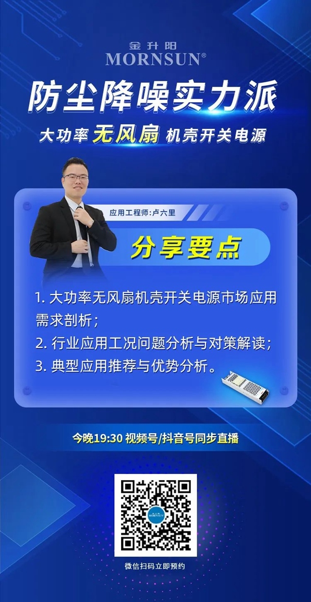 大功率無風(fēng)扇機(jī)殼開關(guān)電源——工業(yè)制造不同場(chǎng)景如何選取合適的開關(guān)電源?市場(chǎng)應(yīng)用中關(guān)于防塵降噪會(huì)遇到哪些問題?如何設(shè)計(jì)滿足防塵降噪需求? 視頻號(hào)/抖音號(hào)/捷客三大平臺(tái)同步放送!今晚七點(diǎn)半,金升陽直播間等你來品! 快快掃碼預(yù)約吧~直播活動(dòng)預(yù)告福利1——邀約有...