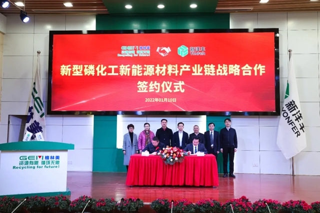 2022年1月10日,格林美股份有限公司(以下簡稱“格林美”)與新洋豐農(nóng)業(yè)科技股份有限公司(以下簡稱“新洋豐”)在格林美荊門園區(qū)正式簽署《磷資源化工新能源材料產(chǎn)業(yè)鏈一體化戰(zhàn)略合作框架協(xié)議》。荊門市人民政府副市長李文震,市政府副秘書長傅強(qiáng),鐘祥市市長楊孟...