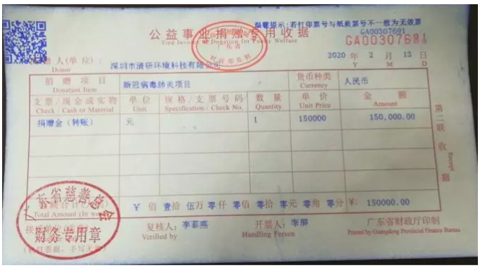 為表達(dá)對(duì)前線抗疫戰(zhàn)士的敬意和支持,2020年2月13日,深圳市清研環(huán)境科技有限公司向廣東省慈善基金會(huì)捐助現(xiàn)金15萬元。同時(shí),清研環(huán)境骨干員工組成的“戰(zhàn)狼團(tuán)隊(duì)”也自發(fā)捐助3.25萬元用于為抗疫戰(zhàn)士購(gòu)買愛心物資,其中第一批愛心物資已于當(dāng)天交給支援武漢的廣東醫(yī)療隊(duì)醫(yī)護(hù)人員。廣東省慈...