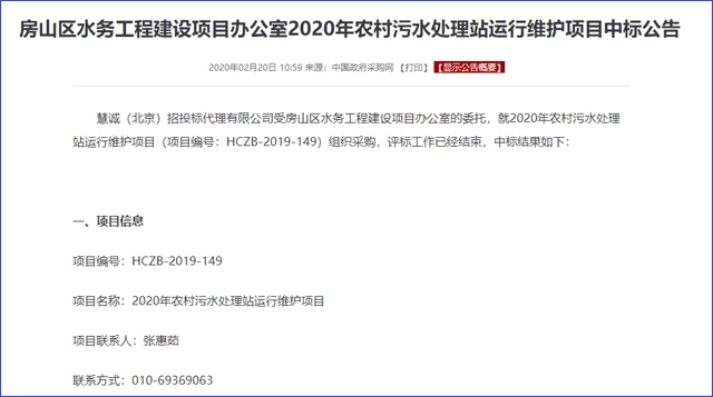 截圖源于中國(guó)政府采購(gòu)網(wǎng) 源于中國(guó)政府采購(gòu)網(wǎng)近日公開消息,由北京金河水務(wù)建設(shè)集團(tuán)有限公司、華航環(huán)境發(fā)展有限公司、北京中聯(lián)環(huán)工程股份有限公司組成的聯(lián)合體預(yù)中標(biāo)北京市房山區(qū)農(nóng)村污水治理工程(處理站一片區(qū)、二片區(qū))PPP項(xiàng)目(編號(hào):GXTC-A-1961004)。運(yùn)維服務(wù)水費(fèi)單價(jià)為4.11元/㎡、可用性年付...