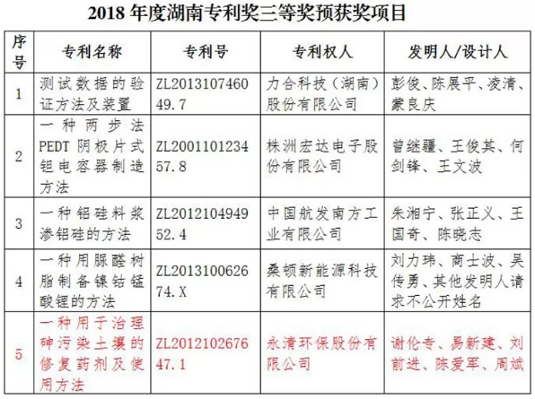 喜報!永清環(huán)保榮膺2018年度湖南省專利獎