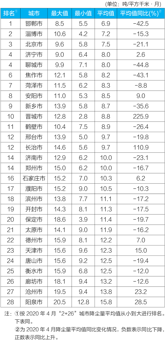 生態(tài)環(huán)境部近日向媒體公布了2020年4月京津冀大氣污染傳輸通道“2+26”城市(以下簡稱“2+26”城市)和汾渭平原11城市降塵監(jiān)測結(jié)果。 一、“2+26”城市 4月,“2+26”城市降塵量均值范圍在6....