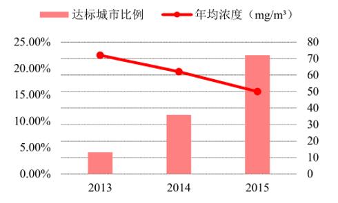 一、空氣污染猶存,顆粒物濃度超標嚴重隨著經(jīng)濟快速發(fā)展,我國工業(yè)化、城鎮(zhèn)化進程加快,成為難以避免的嚴重問題。近年來,我國改善緩慢,大氣污染物的排放總量長年居高。按污染物分類來看,四類主要污染物年均濃度基本呈現(xiàn)逐年下降趨勢,達標城市比例有所提高,二氧化硫和氮氧化物2015年全國平均年均濃度已達到一級空氣...