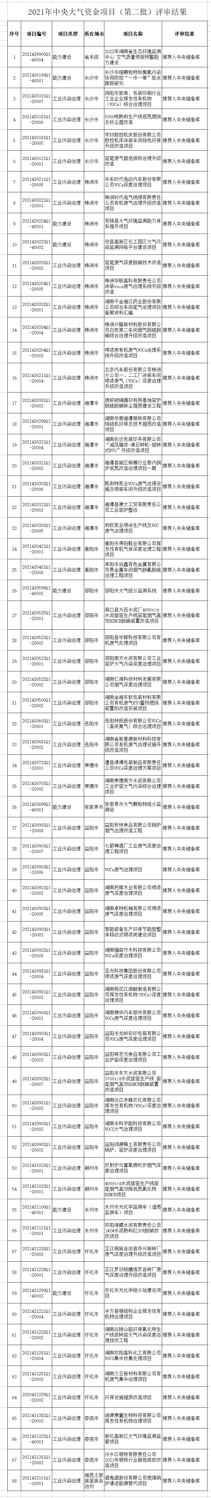 湖南省生態(tài)環(huán)境廳關(guān)于2021年中央生態(tài)環(huán)境資金大氣項(xiàng)目(第二批)評(píng)審結(jié)果的公示