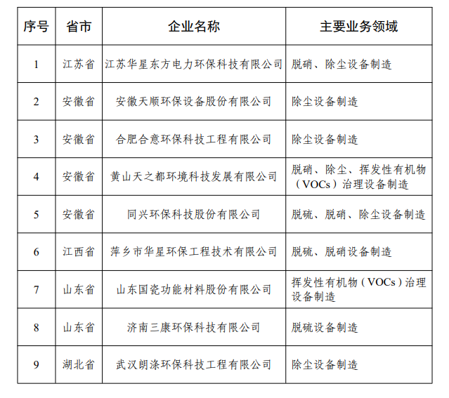 2021年符合《環(huán)保裝備制造行業(yè)(大氣治理)規(guī)范條件》企業(yè)名單(第五批)公示