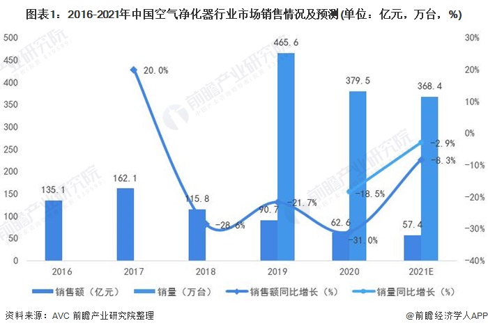 行業(yè)規(guī)模大幅下滑 近年來,中國(guó)空氣凈化器行業(yè)的銷售額和銷量均呈現(xiàn)下滑的態(tài)勢(shì)。其中2020年中國(guó)空氣凈化器銷量為379.5萬臺(tái),同比下降18.5%;銷售額為62.6億元,同比下滑31%。在2020年疫情的影響下,居民對(duì)于健康的重視程度不斷提升,將帶動(dòng)空氣凈化器產(chǎn)品的需求增長(zhǎng)。 2021年行業(yè)的降幅將有...