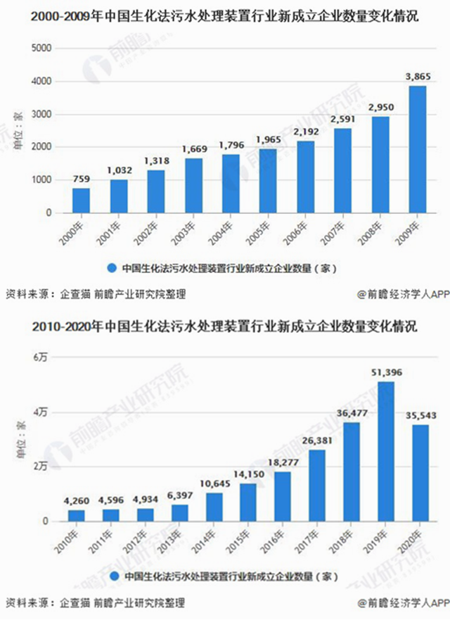 1、中國生化污水法裝置行業(yè)發(fā)展現(xiàn)狀分析 根據(jù)企查貓的數(shù)據(jù)顯示,2000-2020國生化法污水處理裝置行業(yè)新成立企業(yè)數(shù)呈現(xiàn)逐年上升趨勢。自2014年起,中國生化法污水處理裝置行業(yè)新成立企業(yè)數(shù)呈現(xiàn)爆發(fā)狀態(tài),在2019到了近年了峰值51396家,較2013年的6397家翻了將近5倍。 截止到2020年12...
