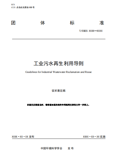 關(guān)于征求團體標(biāo)準(zhǔn)《工業(yè)污水再生利用導(dǎo)則(征求意見稿)》意見的函 由我會組織編制的團體標(biāo)準(zhǔn)《工業(yè)污水再生利用導(dǎo)則》已完成征求意見稿,根據(jù)《中國環(huán)境科學(xué)學(xué)會標(biāo)準(zhǔn)管理辦法(試行)》的有關(guān)規(guī)定,現(xiàn)公開征求意見。請?zhí)顚懸庖姺答伇?,并?022年7月13前將有關(guān)意見反饋我會(電子文檔請同時發(fā)送至聯(lián)系人郵箱)。 ...