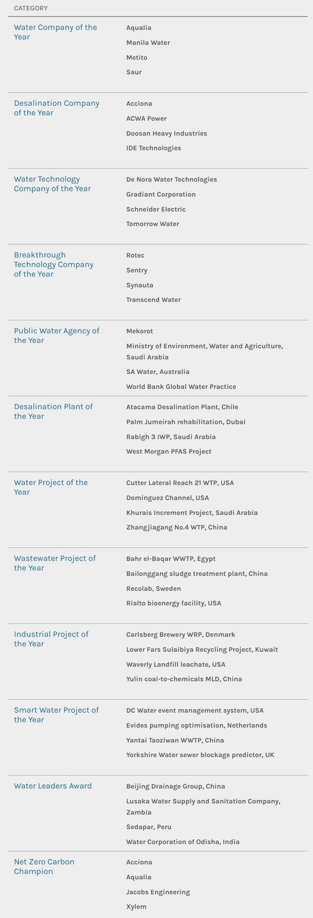 GWI發(fā)布2022全球水獎入圍名單 水利工程、污水處理、智慧水務(wù)都有哪些中國項目入選?
