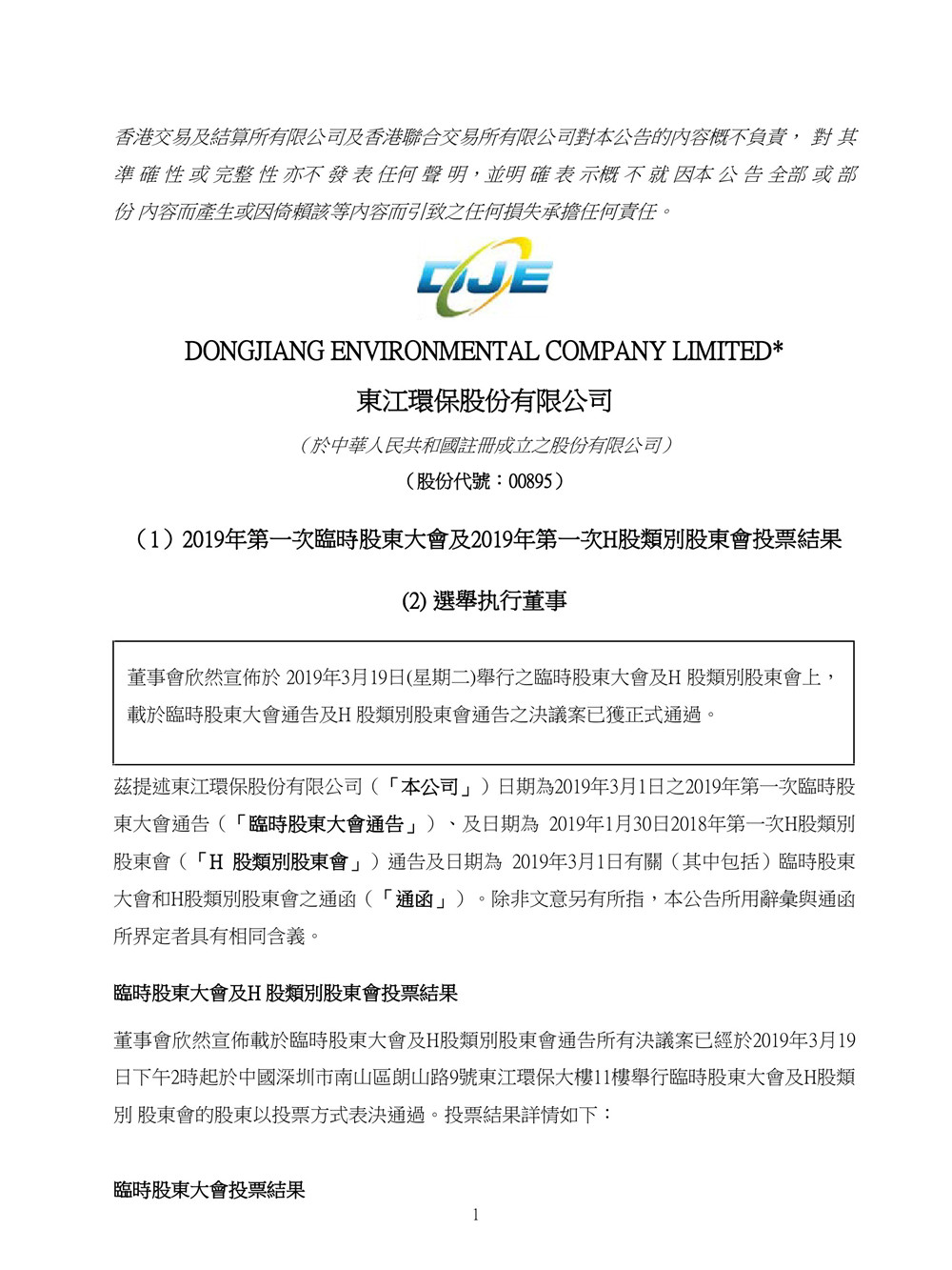東江環(huán)保發(fā)布公告,于2019年3月19日舉行2019年第一次臨時(shí)股東大會(huì)上,選舉姚曙為公司第六屆董事會(huì)執(zhí)行董事,任期將自2019年第一次臨時(shí)股東大會(huì)審議通過(guò)之日起生效,至公司第六屆董事會(huì)任期屆滿。原標(biāo)題:東江環(huán)保(00895)選舉姚曙為執(zhí)行懂事