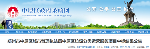 鄭州市中原區(qū)垃圾分類運(yùn)營(yíng)服務(wù)項(xiàng)目發(fā)布中標(biāo)結(jié)果公告,鄭州傲藍(lán)得環(huán)保科技有限公司和浙江聯(lián)運(yùn)環(huán)境工程股份有限公司分獲第一標(biāo)段和第四標(biāo)段。 據(jù)悉,項(xiàng)目的服務(wù)內(nèi)容為:鄭州市中原區(qū)10個(gè)小區(qū)居民日常生活垃圾分類減量工作,并對(duì)小區(qū)生活垃圾進(jìn)行“四分類”(可回收垃圾、有害垃圾、廚余垃圾、其它...