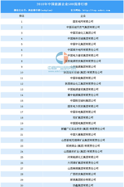 導(dǎo)讀:中商產(chǎn)業(yè)研究院發(fā)布了《2018年中國(guó)能源企業(yè)500強(qiáng)排行榜(附完整排名)》,起重量涉及多家垃圾發(fā)電企業(yè),如中國(guó)節(jié)能集團(tuán)、深圳能源集團(tuán)、杭州錦江集團(tuán)等。具體內(nèi)容如下:日前,2018年中國(guó)能源企業(yè)500強(qiáng)榜單出爐。據(jù)悉,此榜單以各能源集團(tuán)上一年度營(yíng)業(yè)收入為評(píng)價(jià)標(biāo)準(zhǔn),數(shù)據(jù)主要來(lái)企業(yè)自報(bào)、相關(guān)機(jī)構(gòu)或企...