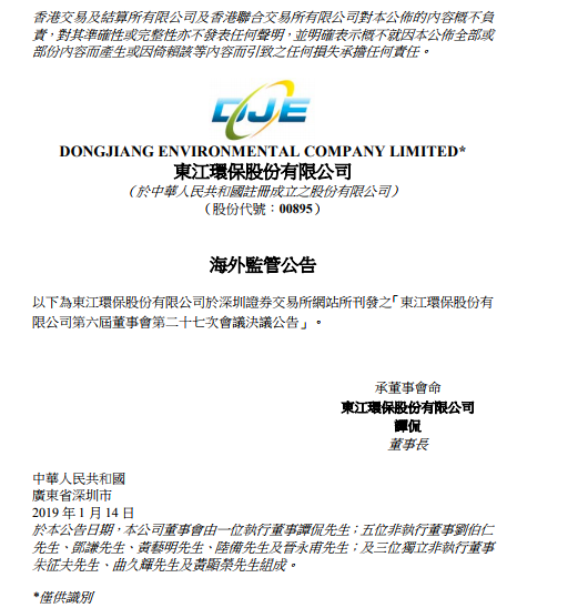 企業(yè)公告丨東江環(huán)保董事會(huì)同意聘任姚曙為公司總裁