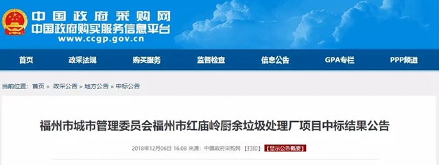 日前,從中國(guó)政府采購(gòu)網(wǎng)獲悉,福建首個(gè)廚余垃圾處理PPP項(xiàng)目--福州市紅廟嶺廚余垃圾處理廠項(xiàng)目(以下簡(jiǎn)稱福州項(xiàng)目)中標(biāo)結(jié)果出爐,首創(chuàng)環(huán)境控股有限公司聯(lián)合體以261元/噸中標(biāo)價(jià)成功將項(xiàng)目攬入懷中。 福州項(xiàng)目是福州市垃圾分類(lèi)的終端處理設(shè)施——紅廟嶺循環(huán)經(jīng)濟(jì)生態(tài)產(chǎn)業(yè)園區(qū)的重要組成部分...