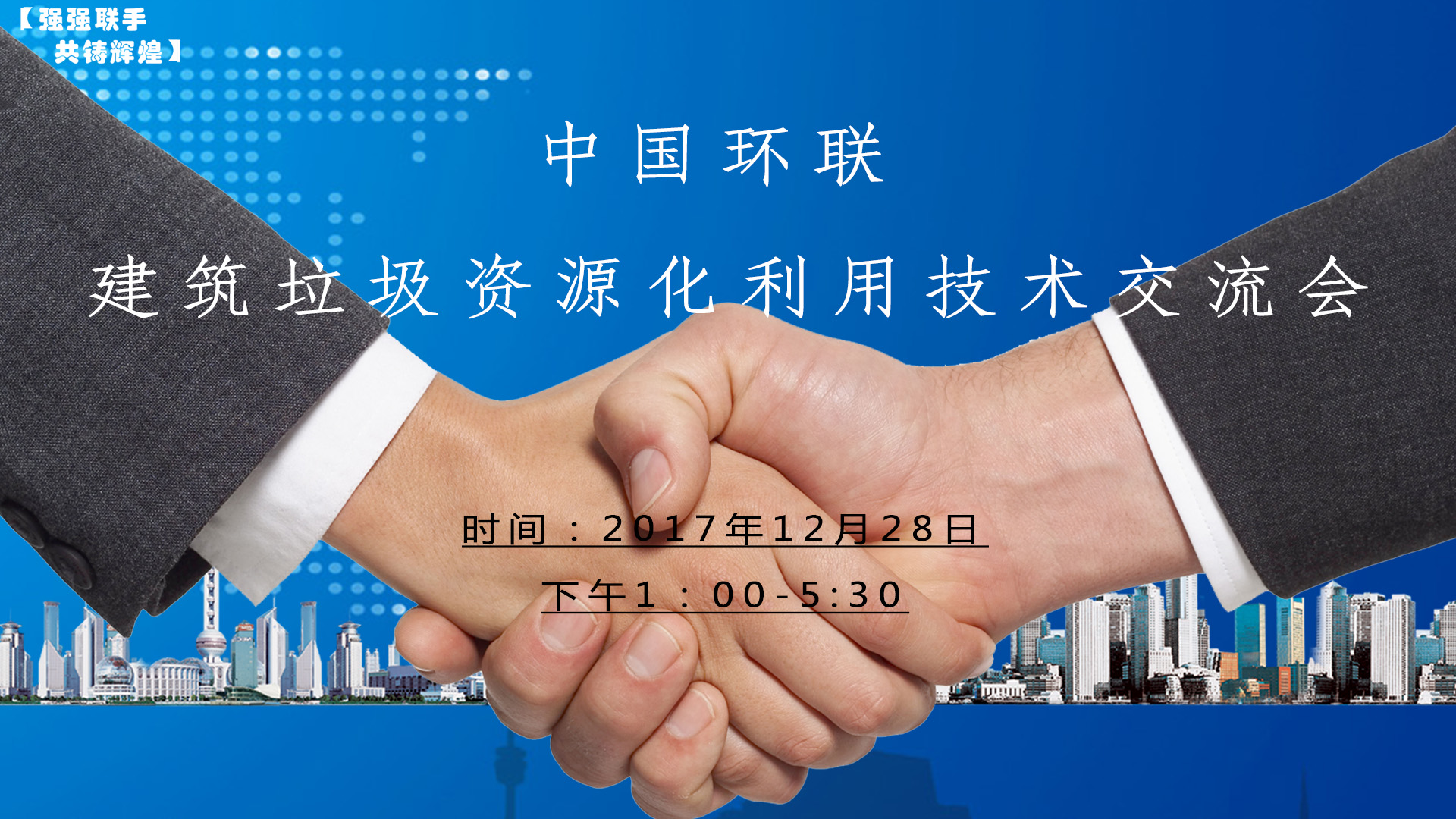 中國戰(zhàn)略性新興產(chǎn)業(yè)環(huán)保聯(lián)盟(簡稱“中國環(huán)聯(lián)”)于2017年10月面向全國征集了建筑垃圾資源化等處理技術(shù)及典型案例,經(jīng)過對案例的專業(yè)評審與篩選,中國環(huán)聯(lián)擬于12月28日召開建筑垃圾處理技術(shù)沙龍活動,深入探討各類建筑垃圾處理創(chuàng)新技術(shù),為建筑垃圾處理相關(guān)企業(yè)搭建交流先進(jìn)技術(shù)理念、分享和學(xué)習(xí)成功經(jīng)驗(yàn)的平臺,...