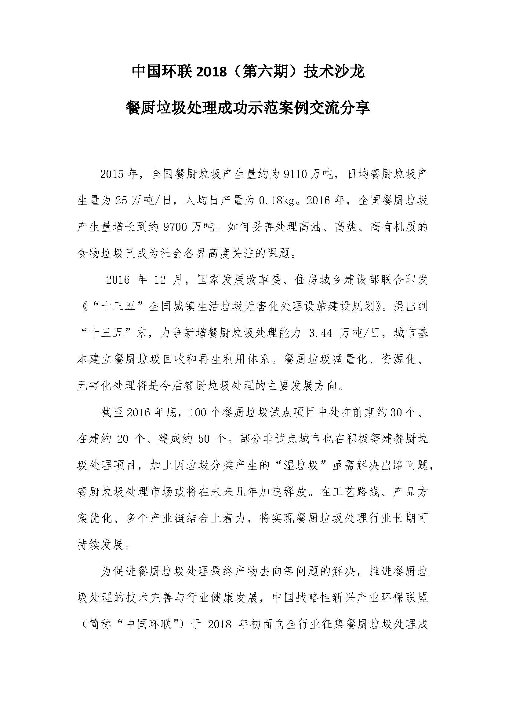 中國環(huán)聯(lián)關(guān)于征集餐廚垃圾處理優(yōu)秀案例的通知