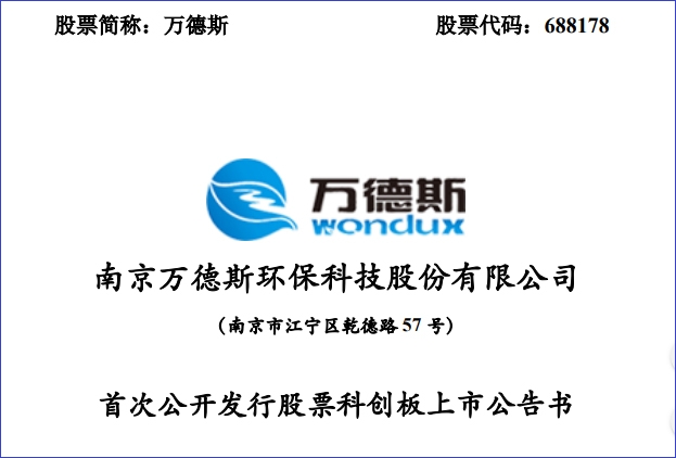 南京萬德斯環(huán)保科技股份有限公司距離登陸科創(chuàng)板上市更進(jìn)一步。 12月23日晚間,萬德斯發(fā)布科創(chuàng)板上市招股意向書、上市發(fā)行安排及初步詢價(jià)公告,正式啟動(dòng)招股。發(fā)行人股票簡(jiǎn)稱“萬德斯”,擴(kuò)位簡(jiǎn)稱為“萬德斯環(huán)保”,股票代碼為“688178&rdquo...
