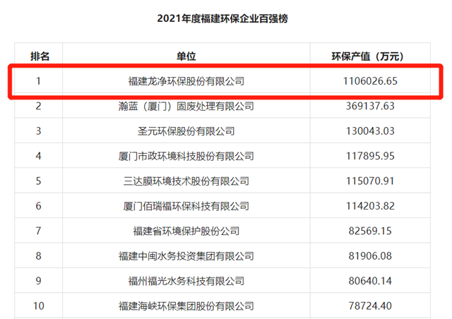 龍凈環(huán)保再次榮登福建環(huán)保企業(yè)百強榜榜首